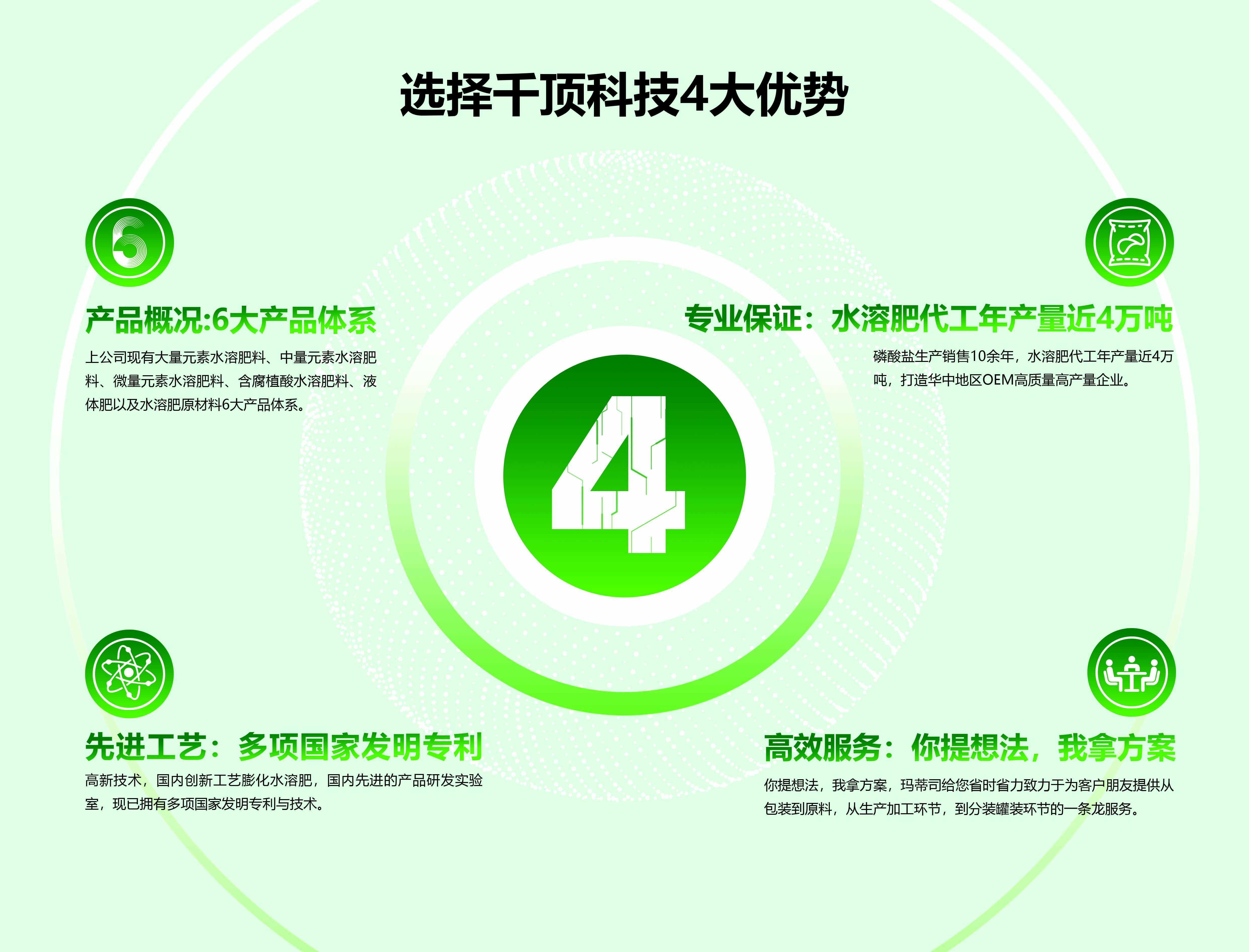湖北千頂科技有限公司位于九省通衢,美麗的江城武漢,是一家專(zhuān)業(yè)從事研發(fā)、生產(chǎn)、磷酸鹽和高端水溶肥等一體化工企業(yè),是一家致力于打造農(nóng)業(yè)與工業(yè)攜手進(jìn)步的化工企業(yè)...